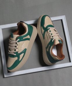 Upper Material: Made from durable synthetic leather, combining a beige base with green overlays for striking contrast.